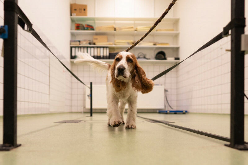 Ook doen ze een bewegingsanalyse. Hier loopt een patiënt met rugpijn over een drukplaat. Honden met artrose hebben baat bij een nieuwe behandeling: een injectie die lokaal in het gewricht een pijnstiller afgeeft met langdurige werking. Dit blijkt veilig en effectief. Mogelijk kan de behandeling in de toekomst ook mensen helpen. Marianna Tryfonidou , hoogleraar aan de faculteit Diergeneeskunde van de Universiteit Utrecht, werkte voor dit onderzoek samen met academische partners en bedrijven. De Universiteit Utrecht werkte de afgelopen jaren samen met de projectcoördinator Universitair Medisch Centrum Utrecht aan een nieuwe behandeling tegen artrose: een pijnstiller die ze via een injectie direct in het gewricht inspuiten.